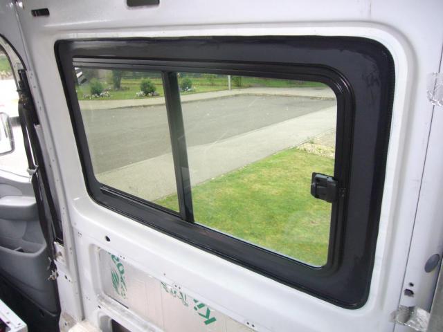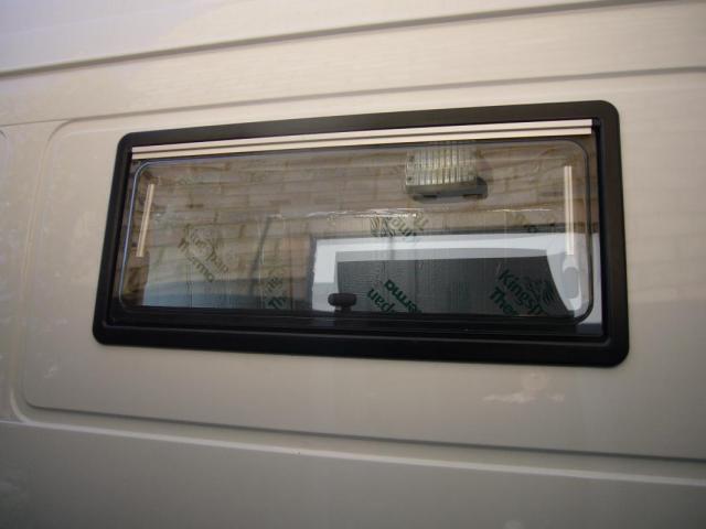 Obtained bonded windows (fixed and sliding) for all windows except the rear kitchen window. Needed this to open for ventilation but could only get a fixed bonded window for this panel, as it's a different size to the other panels. So had to compromise with a Seitz opening window instead. But it worked out pretty well and I don't think the different window styles clash too badly.