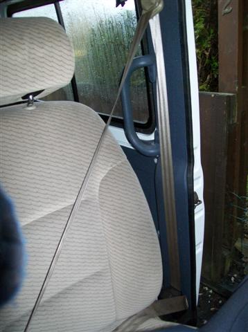 The results can be seen in the photos. The Peugeot seat mounted seatbelt setup also means that I have been able to remove the floor mounted LDV seatbelt stalks (along with the wheelbrace/jack handle clips) which leaves a clear cab floor between the front seats.